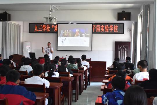 九三学社“戏曲进校园”活动同时在金寨县果子园乡实验学校进行。安徽省徽京剧院营销中心主任、国家一级演员、九三学社社员周斌,以“戏曲知识普及”为主题,用生动的语言向现场的70余名学生介绍了戏曲的起源、形成、剧种及京剧声腔形式等戏曲知识,并现场教授同学们唱功基本方法和戏曲动作,让同学们深刻体会到优秀传统文化的魅力。
