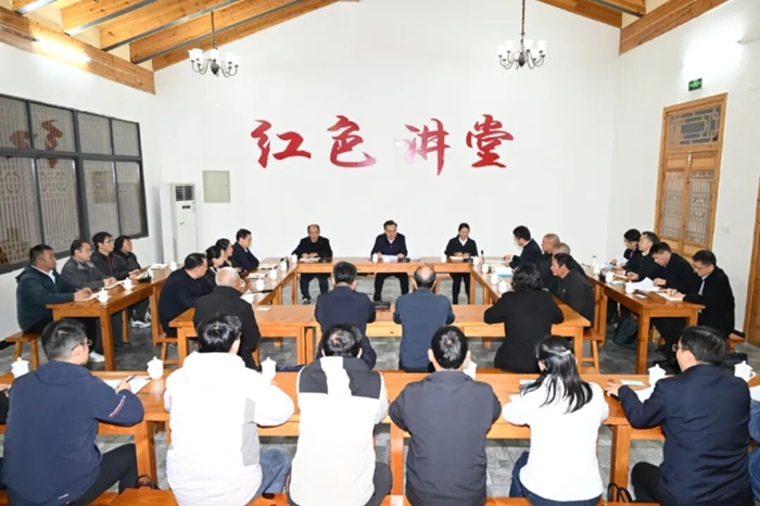 11月10日晚,省委书记梁言顺在金寨县大湾村红色讲堂与县乡村党员干部和村民代表座谈交流,宣讲党的二十届四中全会精神。