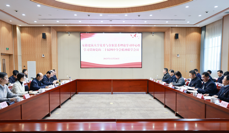为深入学习贯彻党的二十届四中全会精神和习近平总书记考察安徽重要讲话精神,进一步推动校地战略合作走深走实,12月26日,安徽建筑大学党委与金寨县委在金寨县联合举行理论学习中心组主题联学活动暨学校2025年第十五次党委理论学习中心组学习。该校领导马文革、蔡国军、李早、王佐才、黄多能、党委理论学习中心组其他成员和随机抽点的党员干部等共24人,金寨县委书记张涧、县长董益乐以及县四个班子领导同志参加了此次活动。