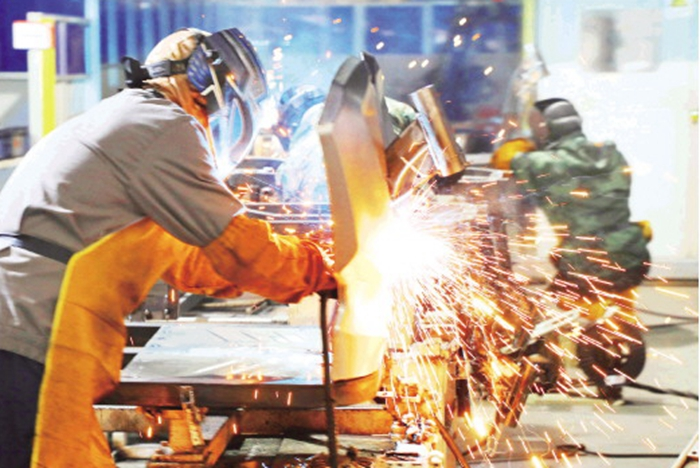 3月2日,在位于金寨经济开发区境内的安徽雅迪机车有限公司生产车间,工人在进行电动车零部件焊接装配作业,全力冲刺首季“开门红”。记者田凯平 摄