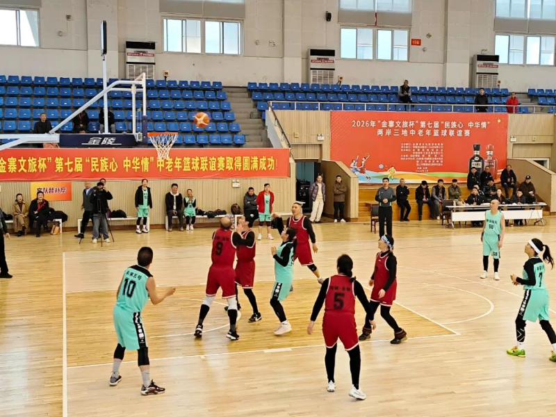 3月9日上午,2026年“金寨文旅杯”第七届“民族心 中华情”两岸三地中老年篮球联谊赛在金寨县体育馆开赛,来自全国各地的36支代表队、近400名篮球爱好者齐聚一堂,以球会友,共同开启这场融汇体育竞技与两岸三地深厚情谊的篮球盛会。