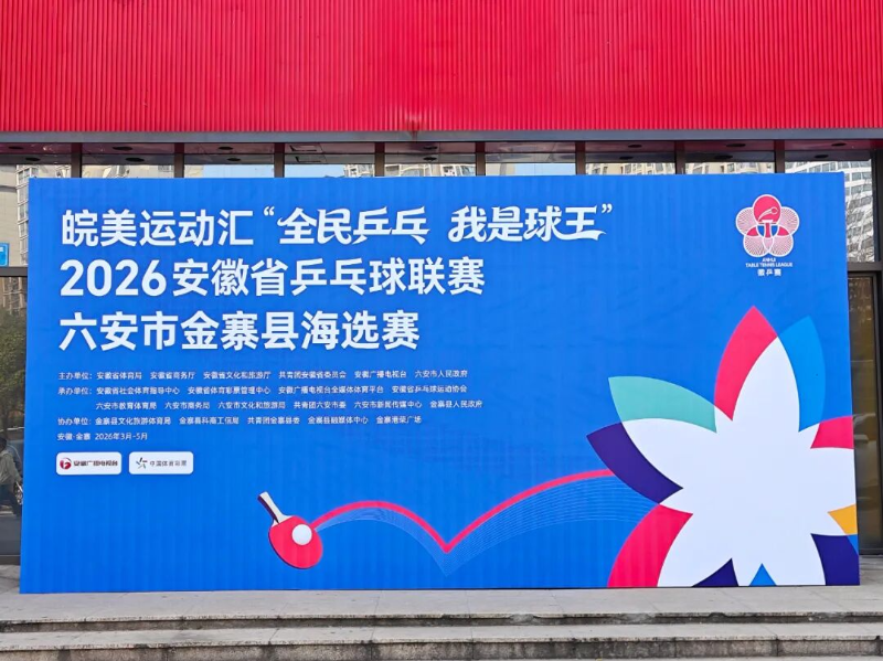3月14日,皖美运动汇“全民乒乓 我是球王”2026安徽省乒乓球联赛金寨县海选赛在港荣广场正式启幕。