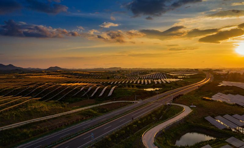 在这里,山间、屋顶随处可见的深蓝色光伏板构成一道靓丽的风景线。