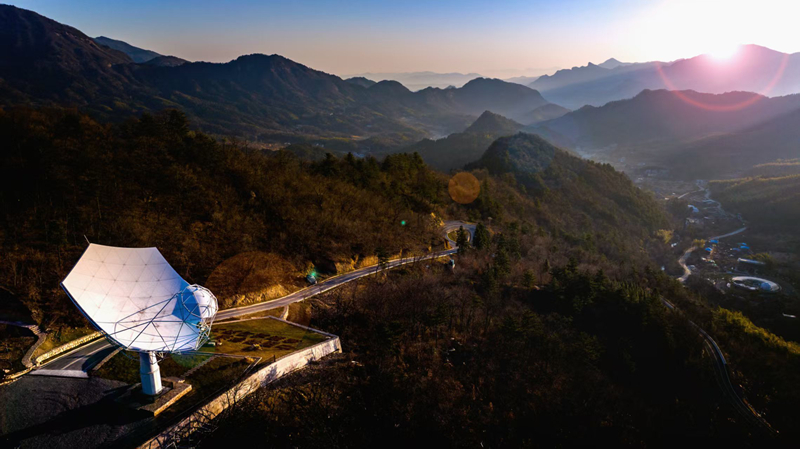 龙马天文台矗立在大别山腹地金寨县燕子河镇龙马村,巨大的观测设施犹如一只巨眼望向无垠苍穹,将前沿科研与红色热土紧密相连。这座天文观测设施由中国科学技术大学、中国电科网络通信研究院与金寨县人民政府三方共建,老区从此多了一双仰望星空的“眼睛”。它以科技赋能乡村振兴,让大山与宇宙对话,让梦想与星光同行。
